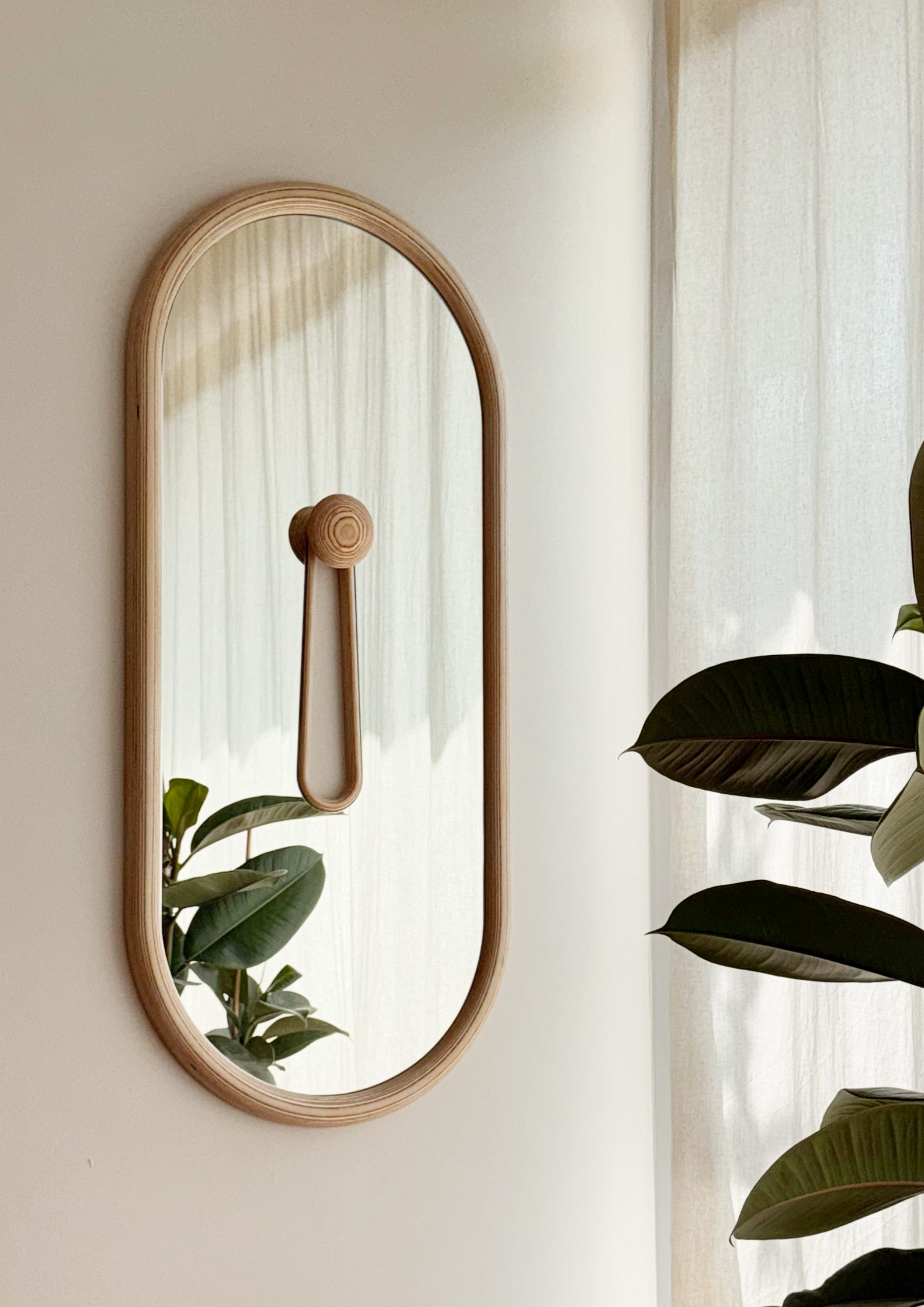 mirror with a wooden frame. Its minimal lines and natural texture bring warmth to the interior while highlighting