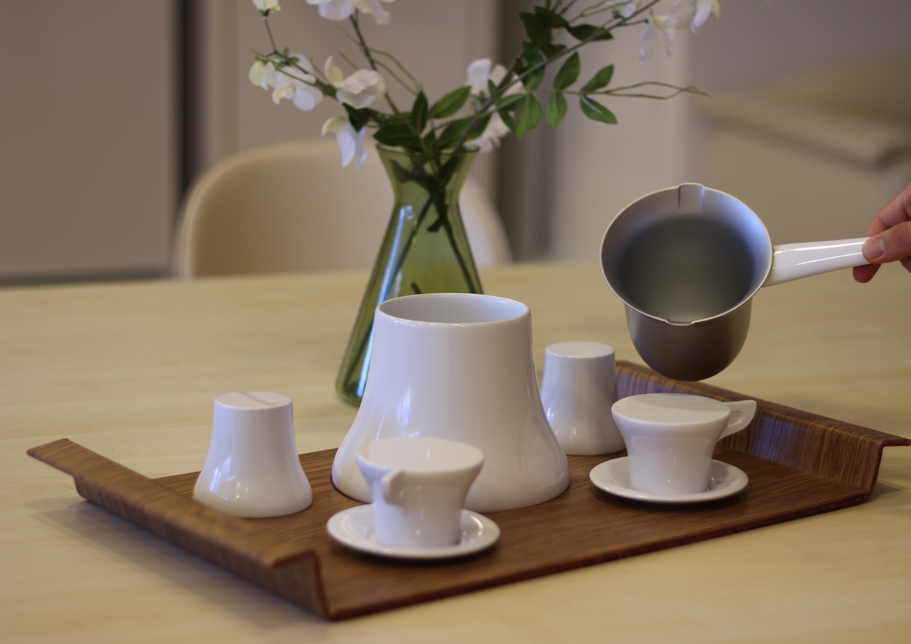Kalde is a traditionally-based, modern looking, manual coffee cooker that uses the cooking in sand method. One of its major characteristics is that it cooks the coffee using very little energy. Coffee that is cooked in sand is the most delicious. What makes it so delicious is the sand that surrounds the coffeepot, giving equal heat to all sides, and that it is cooked gradually in a longer time. Besides, due to the fact that the sand retains the heat for a very long time, electric energy is used only for 1 or 2 minutes. When the sand reaches the adequate temperature, electric energy stops automatically. Coffee is cooked gradually in a stable temperature. The temperature rises when needed. Since Kalde is a manual coffee cooker, coffee can be taken before it overflows. In order to prevent the coffeepot buried in sand from spilling sand onto the kitchen bench, the pot is designed as dependent to the main body. Coffee is cooked in 90 degrees in sand. During my researches, it was observed that the heat reaching the coffeepot does not surpass 90 degrees even if the temperature of the cooker reaches higher units. This feature was designed with the aim to cook coffee with less energy without reaching high temperatures.